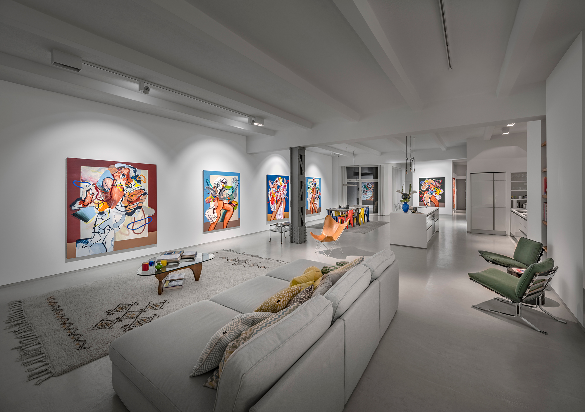 These works engage with key compositional techniques such as sacred geometry and rabatment which helps to guide the viewer’s perception and understanding of the space within the frame.’