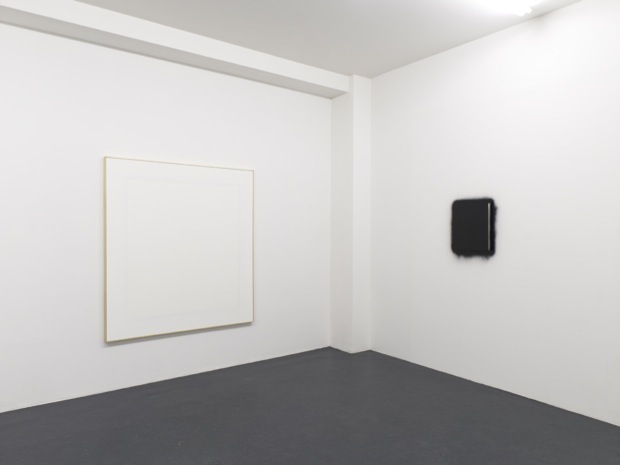 The exhibition shows all-white paintings as well as a current spray-painting, which relates to a similar iteration as a temporary wall installation in 1976. The non-white outling piece exemplifies Erben's usage of the occurrence of color from an image, either on canvas or the wall, further expanded into the room. It is a standalone precursor to Erben's many room designs and conveys a meditative aura and strong spatial effect through the visually indeterminate boarders of the colored particles.
